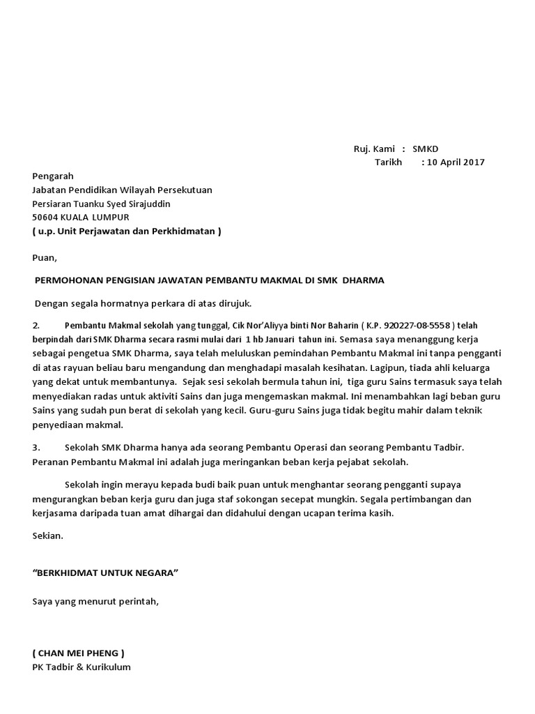 Surat Permohonan Kerja Sebagai Pembantu Tadbir Surat Rasmi 1